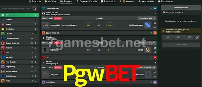 O Pgwbet oferece uma grande seleção de opções de apostas em e-sports com probabilidades competitivas